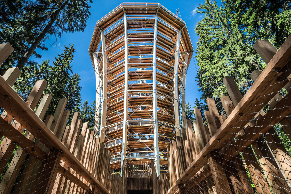Widoki na drzewa, karkonoskie zwierzęta zapach lasu, dźwięki przyrody – można tego doświadczyć w skondensowanej dawce właśnie w Jańskich Łaźniach. Ścieżka powstała na zboczu Czarnej Góry. Obszar ten to obrzeża Karkonoskiego Parku Narodowego. Twórcy pomysłu trasy w koronach drzew, położyli szczególny nacisk na podziwianie przyrody Karkonoszy. Solidne drewniane pomosty nad ziemią to nie wszystko. Zwieńczeniem ścieżki jest spiralna wieża, która mierzy 45 metrów wysokości. Stoi ona wśród drzew, które są największą atrakcją tego miejsca a z góry rozpościera się widok na Karkonosze. Najbardziej odważni mają możliwość zjechać z wieży 80-metrową zjeżdżalnią.