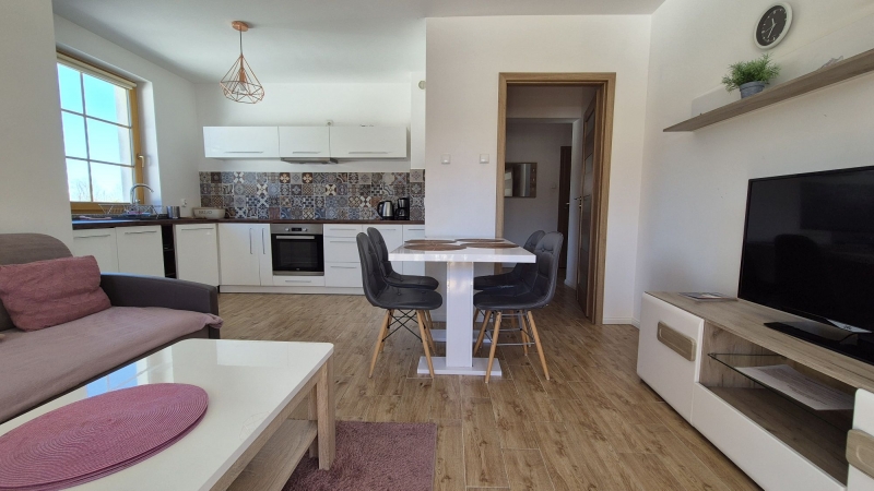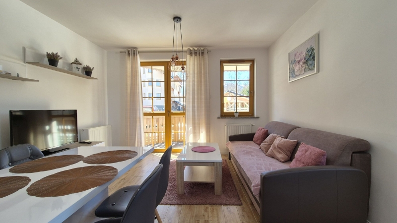 | APARTAMENT Z WIDOKIEM NA ŚNIEŻKĘ - 2 POKOJE / 42m2 / GARAŻ PODZIEMNY Typ oferty: Apartamenty Karpacz Lokalizacja: Karpacz Powierzchnia (m2): 41,59 Ilość pokoi: 2 Rodzaj budynku: apartamentowiec Czynsz: 610 Układ pomieszczeń: rozkładowe Piętro: parter Rodzaj własności: własność Balkon: tak Rok budowy: 2017 Stan techniczny: bardzo dobry Podłogi: kafle Łazienka: z wc, prysznic Kuchnia: aneks kuchenny, z oknem, wyposażona, umeblowana, połączona z salonem Ogrzewanie: wspólna kotłownia gazowa Instalacje: nowe Ciepła woda: wspólna kotłownia gazowa Okna: PCV Pozostałe informacje: umeblowanie, domofon, garaż Zabezpieczenia: domofon 760 000,00 zł