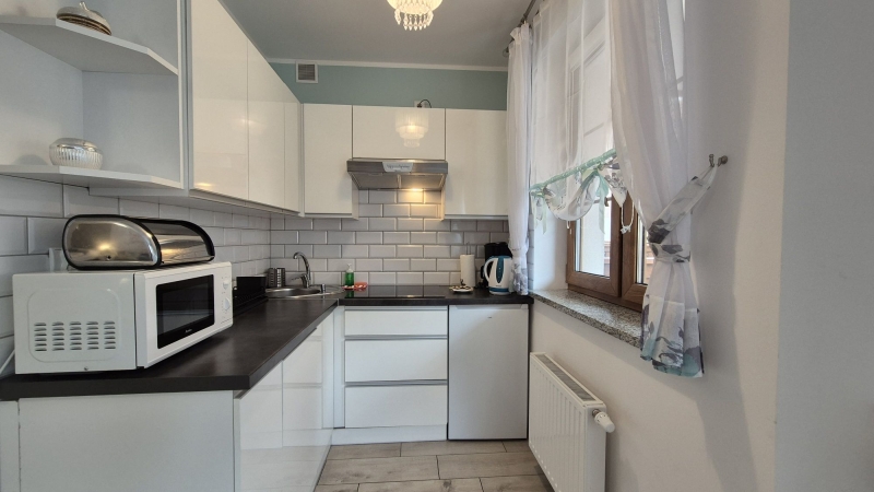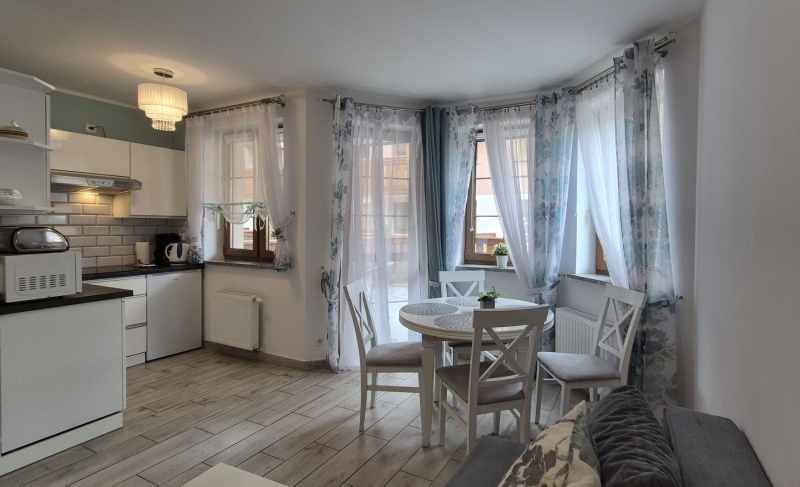 - nowocześnie wykończony i w pełni umeblowany, wyposażony w funkcjonalną zabudowę kuchenną wraz ze sprzętem AGD. Mieszkanie bardzo przyjemne, urządzone w pastelowych kolorach, zadbane i nie wymaga nakładów inwestycyjnych